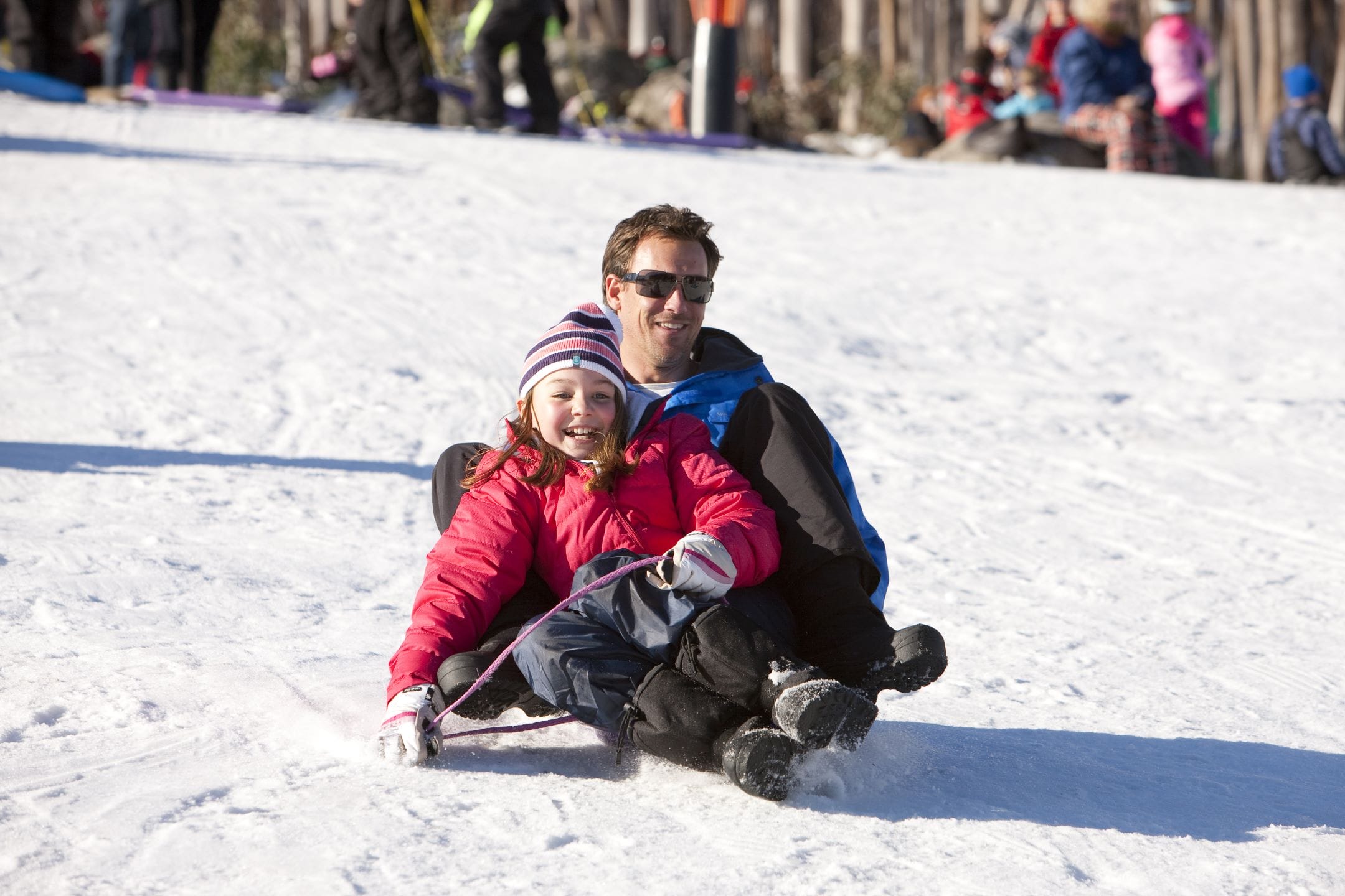 Snow coverage here is often patchy but many times during the season it turns a wonderful white as a blanket of snow falls on the summit. A food truck and hire cart turn up with good conditions; 2-hour toboggan hire will set you back just $20.